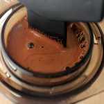 先ほど分量と時間を計ってみたら、豆は15gでエスプレッソ粒度、沸き立ての熱湯を注ぎ始めて抽出を終えるまで60秒でした。約100ccの水を入れたマグカップに直接190ccを抽出。すぐにゴクゴク飲める温度となり、なおかつ好みの濃さになります。都合100杯以上飲んでいるうちに、こんな淹れ方になってました。